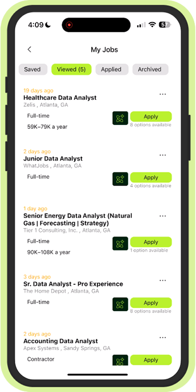 Save jobs, track your progress from “Viewed” to “Applied,” and stay organized without missing anything.